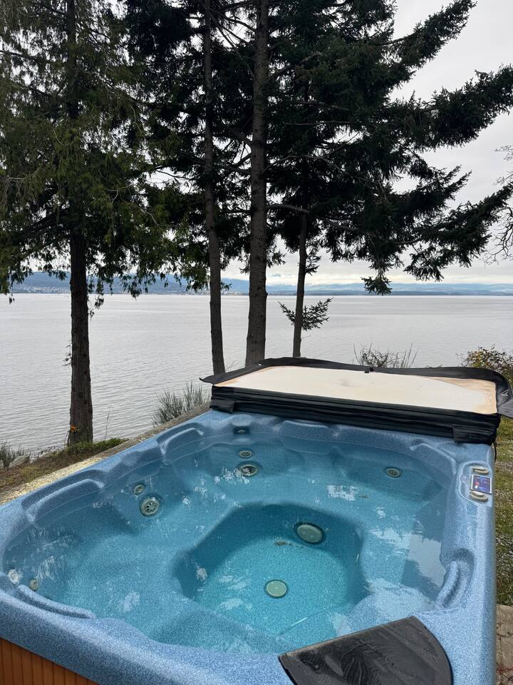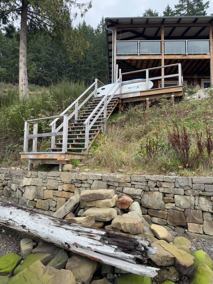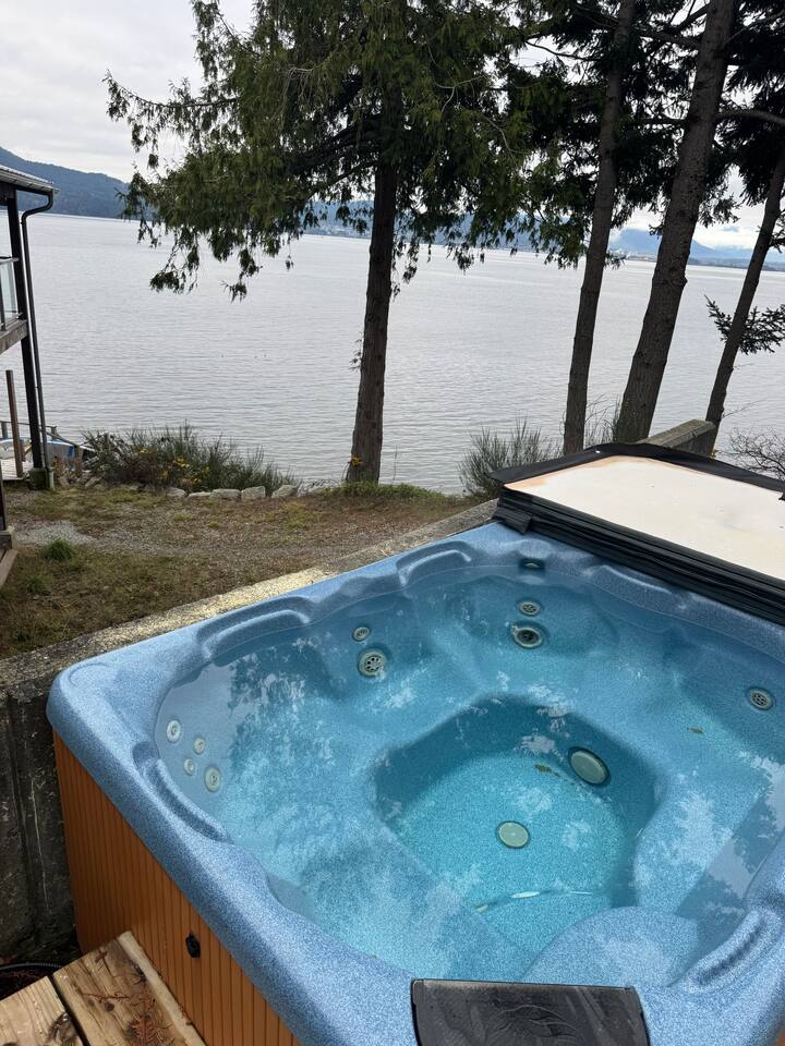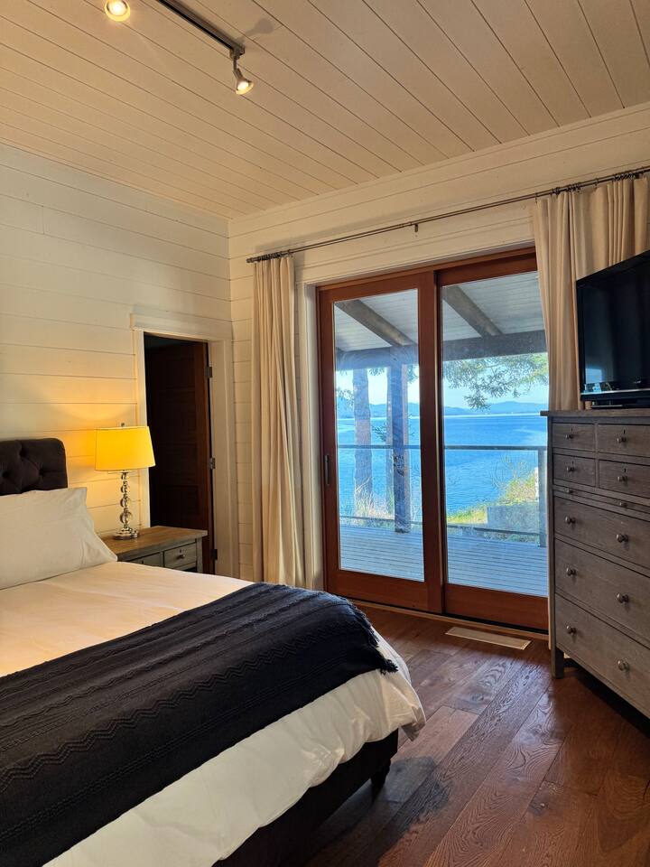 Stunning oceanfront 6-bedroom, 4-bathroom home on Salt Spring Island. Just steps from the BC Ferry terminal, this family-friendly retreat sleeps 11 guests with 7 beds. Enjoy a large, modern kitchen, inviting shiplap interior, and expansive wraparound deck with a fire table and ocean views. Relax in the ocean-view hot tub and watch beautiful sunsets. Perfect for families or groups seeking a peaceful, nature-filled getaway.
